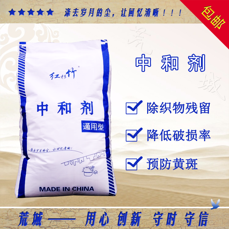中和劑還原性強、穩定性好、儲存方便、對白色織物安全無害。中和水中的游離堿和去除余氯,可預防織物發灰發黃。有助于去除織物中的鐵銹漬。堿類洗料進行織物水洗后,會進行多次過水,但受諸多因素影響,不能保證洗后沒有堿性成份殘留,殘留的堿性成份,可以使織物變灰變黃,也會使織物手感發硬。所以用中和劑與殘存堿性成分發生中和反應,中和織物水洗后殘留的堿以及水中可能存在的堿性物質,調節PH值,使織物的PH值接近人體的體表PH值范圍(5.8~6.5)。